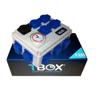 TBOX 12H, è una scatola di temporizzazione multifase che controlla un massimo di 12 accessori da 630w., 12 da 600w., 16 da 400w. o 24 da 315w.