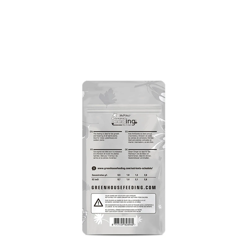 Hybrids di Green House Feeding è progettato specificamente per la crescita e le fasi di fioritura di quelle varietà di piante che provengono da icroci ibridi con un intermedio tempo di fioritura, 8-9 settimane..