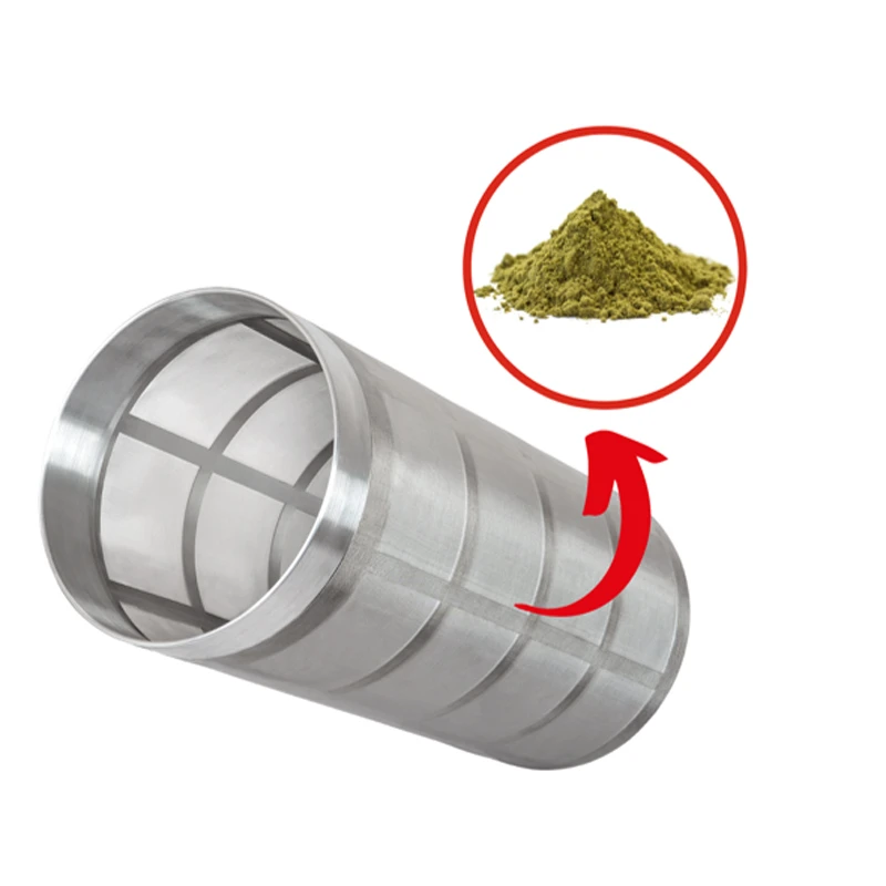 Avec le tambour à mailles en acier inoxydable de 150 microns, vous pouvez facilement transformer le MT Dry 200 en un extracteur de pollen, ajoutant ainsi de grandes possibilités et une grande polyvalence à votre équipement.
