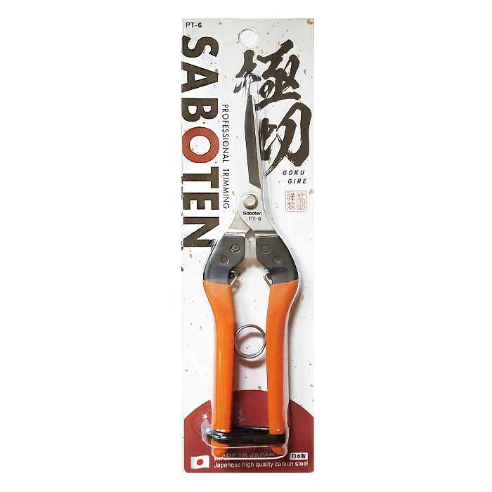 Die in Japan hergestellte Ernteschere SABOTEN ist robust und gut verarbeitet. Die Klingen aus hochwertigem japanischem Karbonstahl sind hartverchromt und extra glatt poliert, damit die Pflanzen beim Schneiden nicht zerkratzt oder gerissen werden. Dieses Modell ist mit 48 mm langen Klingen ausgestattet. Es handelt sich um eine robuste Schere mit soliden Leistungsmerkmalen und langer Lebensdauer.
