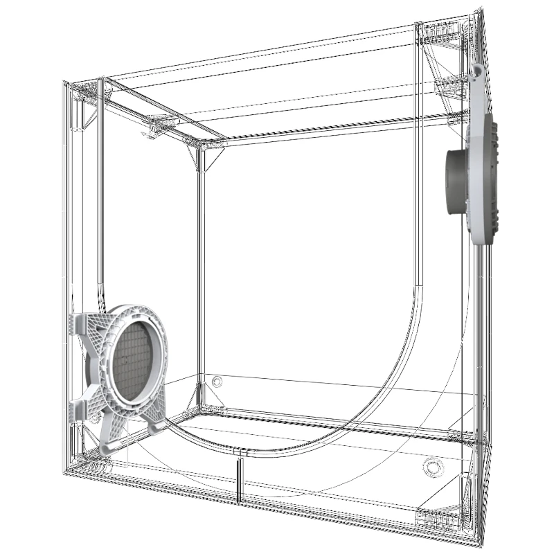 Las bridas para cables y conductos de Secret Jardin le permiten crear tomas y entradas de cables en cualquier lugar de su cuarto de cultivo y le facilitan la configuración según sus necesidades. Gracias a su diseño 100% hermético, puedes conectar fácilmente filtros, conductos y extractores de Ø100mm a Ø150mm. Utilizando el Light Baffle, su brida canalizada también actuará como una entrada de aire totalmente estanca a la luz. Cada Growroom viene con todo el kit necesario para trabajar en la cortina y crear todas las entradas/salidas.