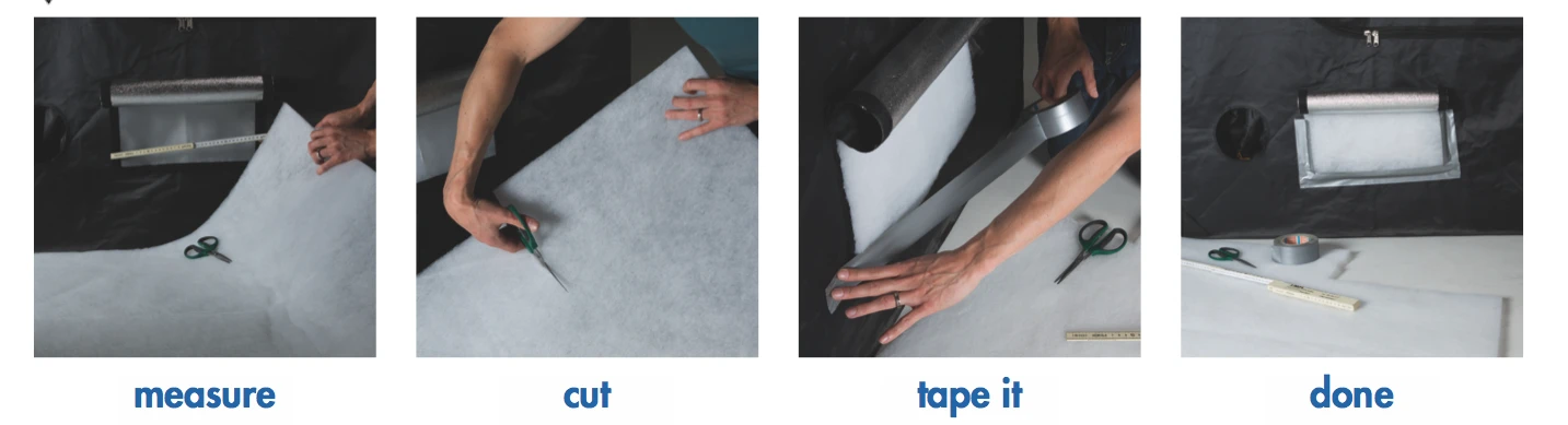 Comment l'utiliser : coupez le filtre à la bonne taille, mettez-le en place et fixez-le avec du ruban adhésif.