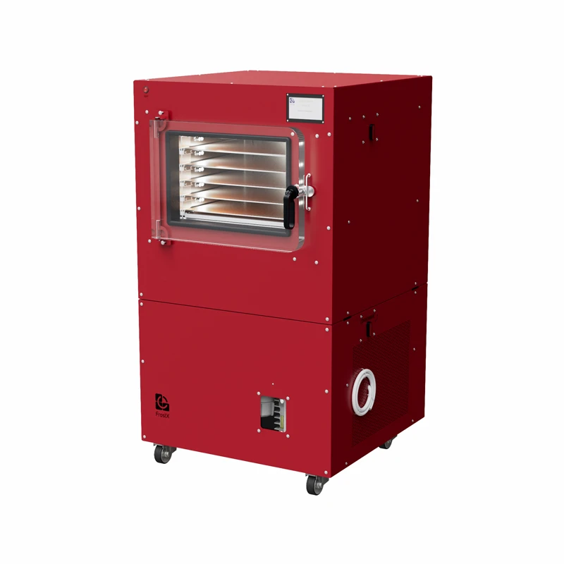 FrostX 10 es un liofilizador universal con una capacidad de carga máxima recomendada de 10 kg. Es ampliamente utilizado por fabricantes de productos liofilizados de alta calidad tanto para uso en interiores como para clientes minoristas.