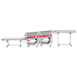 Mit zwei Maschinen erreichen Sie eine Leistung von bis zu 120 kg/h. Außerdem benötigen Sie dank des pneumatischen Kolbenkippsystems keine Schienen für die Installation einer Produktionslinie, was die Montage, Reinigung und Wartung erleichtert.Deshalb können Sie mit einer kompletten Produktionslinie mit zwei MT Tumbler 800 sowie Zu- und Abführbändern Ihre Produktion exponentiell steigern, die Verarbeitungszeit und die Kosten erheblich reduzieren und gleichzeitig die höchste Qualität Ihrer Blumen beibehalten.
